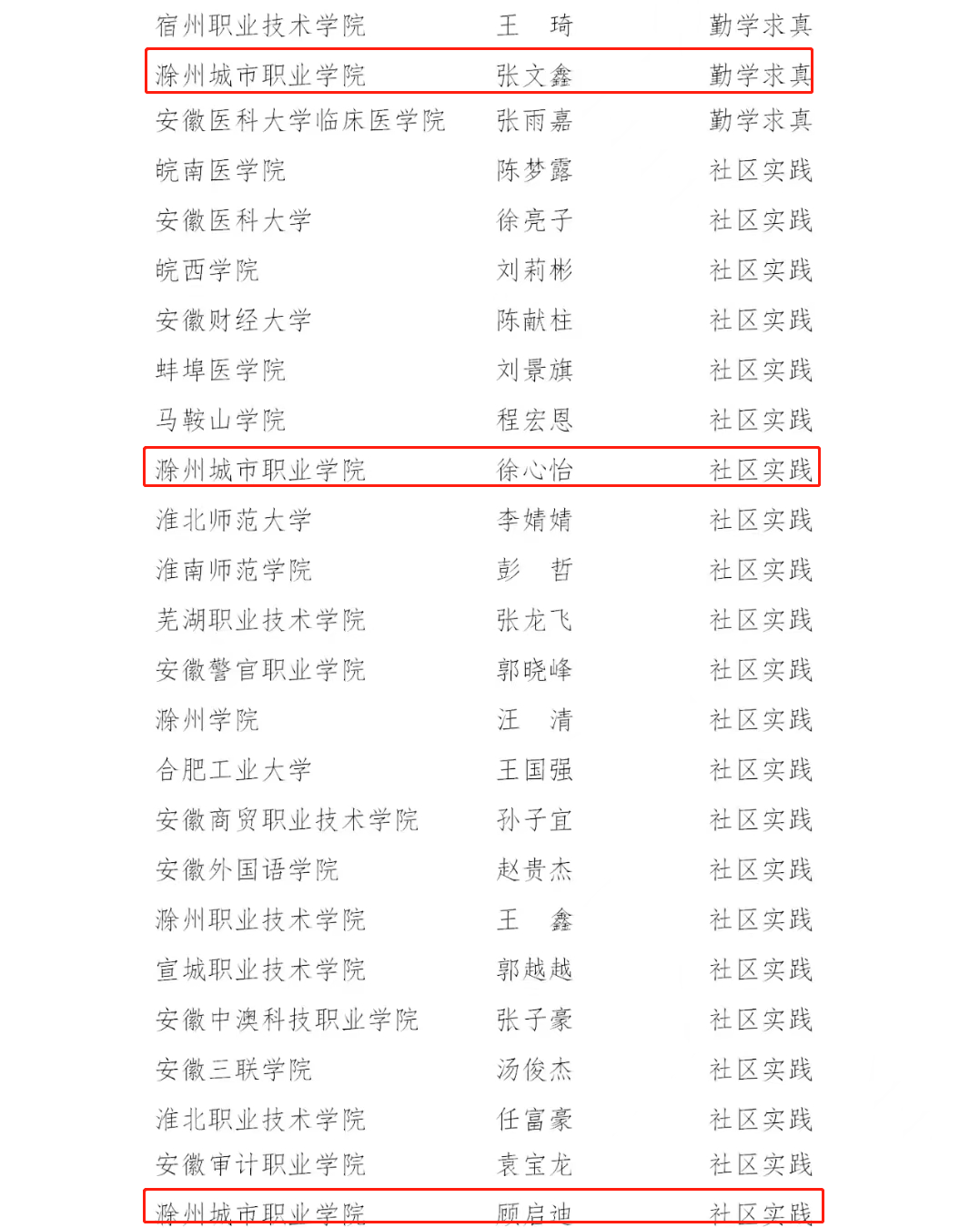 2021年度“安徽省大学生自强之星”名单: