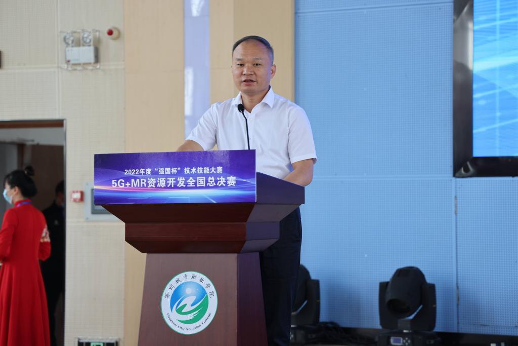 张志华代表学校对出席本次大赛的各位领导、专家、领队及选手们表示热烈欢迎,并介绍了滁州和学校的基本情况。张志华指出,“强国杯”技术技能大赛是广大职工和学生展示技术技能、提升专业素质、促进成长成才的重要平台。引领了职业教育发展的方向,对于高素质技术技能人才的培养和选拔具有重要作用,学校将全力做好服务保障,确保赛事顺利举办。张志华希望,广大参赛选手能够在赛场上展示技能风采、勇攀技术高峰,展现强烈的竞争意识和团队精神,在切磋技艺中增进友谊,做到赛出风格、赛出水平。