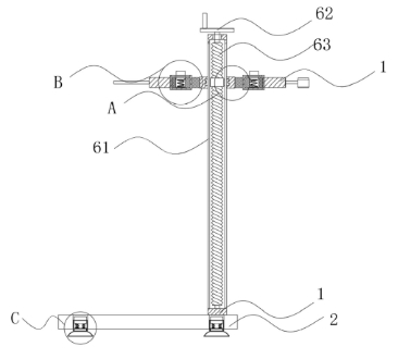 第一项实用新型专利名称为一种有机化学实验用铁架台(专利号:ZL202020812299.1)。本实用新型公开了一种有机化学实验用铁架台,包括铁架杆、操作台和安装块,铁架杆内轴接有升降机构,升降机构的顶部固定安装有摇杆,升降机构的外壁上固定安装有转动板,通过施加任一方向的旋转作用力于摇杆,驱动升降机构带动转动板进行垂直方向上的直线运动,转动板的两端分别安装有插接机构,操作台的底部对称设有吸盘,且吸盘底部端口与桌面之间形成密封腔,按压吸盘用于施加作用力于操作台顶部使密封腔内部气体受压挤出。本实用新型提供的有机化学实验用铁架台,利用摇杆控制升降,使转动板铁圈进行垂直方向上的直线运动,并且通过插接机构固定铁圈或夹具,并且在操作台上设置了固定机构,防止实验过程中铁架台倒塌(图2)。