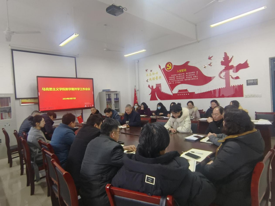 一年春作首,万事行为先。为理清新学期工作思路,进一步提高思政课教学质量,2月27日下午,马克思主义学院在C2南108会议室召开2024年春季学期开学工作会议,学院全体专兼职教师参加会议,会议由马克思主义学院党总支书记、院长季金年主持。