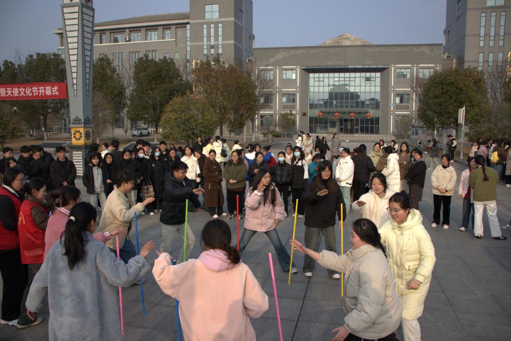 在“两人三足”比赛中,参赛者们两两一组,绑住相邻的两条腿,协同前行。她们步伐一致,配合默契,展现出惊人的团队协作能力。在“不倒森林”项目中,参赛选手们手持长杆,时而小心翼翼地调整角度,时而迅速反应,避免长杆倾倒。现场观赛的同学们也为选手们加油助威,现场气氛热烈而紧张。这不仅考验选手们的平衡感和协调能力,更是对团队默契度和配合能力的极大挑战。