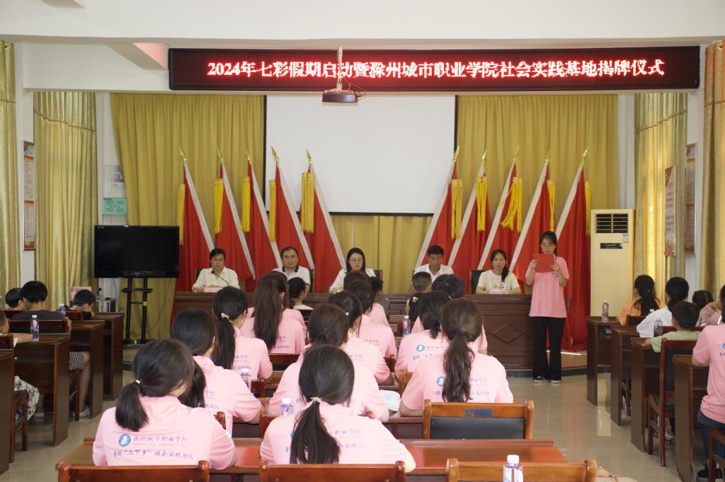 与会领导共同为滁州城市职业学院社会实践基地揭牌,标志着学校在社会实践教育方面迈出了坚实的一步。此次揭牌的社会实践基地将作为学校未来开展各类社会实践活动的重要平台,为广大学生提供更多接触社会、了解社会的机会。