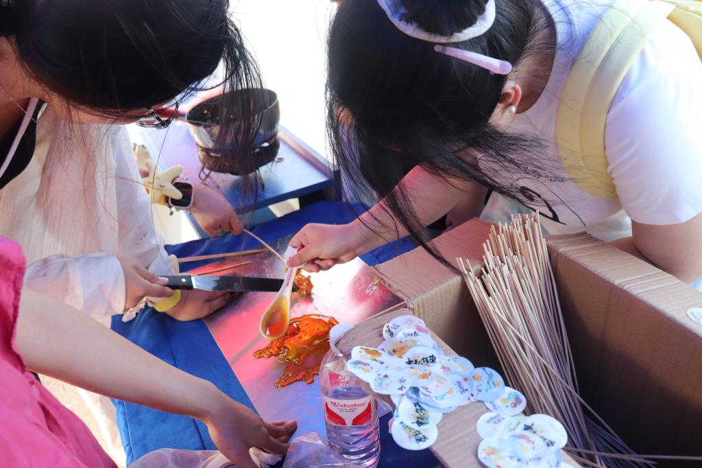 此次游园会中,备受瞩目的亮点之一是糖画制作活动,由刚刚成立的食育社团首次组织开展,成为了全场焦点。糖画这一传统手工艺不仅以其甜美的味道吸引了众多师生,还让大家亲身体验到了传统文化的精髓。在食育社团负责人的巧手下,一幅幅精美的糖画作品逐渐成型,从月亮、玉兔到嫦娥,每一幅糖画都充满了中秋节的象征意义。