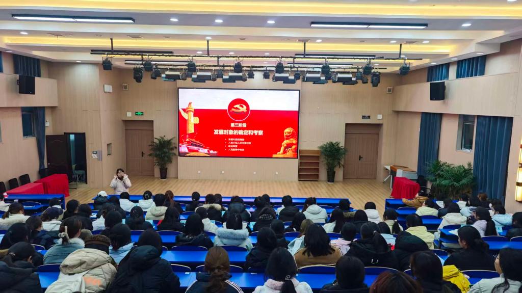 12月12日,第五期“青春先锋课堂”开班仪式在学院报告厅举行。医学院院长左晶晶、党总支副书记刘宝、副院长宋祖荣出席仪式,学生支部全体党员及本期课堂全体学员共同参与。仪式由刘宝主持,他首先向到场嘉宾及学员表示热烈欢迎,详细介绍了“青春先锋课堂”创办初衷与发展历程,强调了本次培训对提升学生政治素养、强化责任担当的重要意义,并介绍了到场领导及授课师资。随后,左晶晶发表开班致辞,她围绕“医学生如何以党建为引领践行初心使命”展开论述,鼓励全体学员珍惜学习机会,将理论学习与医学专业实践相结合,在成长路上坚定理想信念、锤炼过硬本领,努力成为“有理想、敢担当、能吃苦、肯奋斗”的新时代医学青年。开班仪式后,党总支专职组织员姚瑶以《党员发展流程》为题主讲第一课,从入党申请、入党积极分子培养、发展对象考察到预备党员转正等关键环节进行详细解读,帮助学员理清党员发展全流程规范,强化党性修养与组织观念。