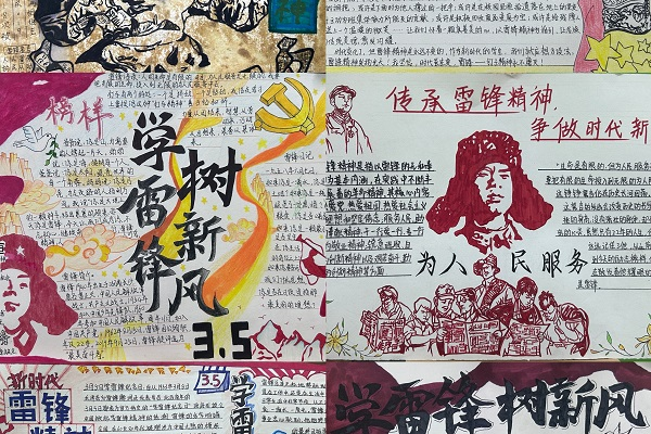 (二)各学院积极开展黑板报、手抄报、主题征文、绘画书法等文艺作品创作。管理与信息学院征集“传承雷锋精神 争做时代新人”为主题的手抄报,同学们把雷锋的崇敬和怀念之情融入到手抄报创作之中,并开展了“传承雷锋精神 争做时代新人” 主题宣传教育班会;教育学院通过视频制作、书画作品创作、黑板报创作讲述雷锋的故事、展示雷锋精神的内涵;医学院将雷锋精神与美育育人深度融合,开展“三月春‘锋’暖 纸韵雷锋情”美育公开课,利用各式各样的剪纸裁剪出自己心目中的雷锋形象,带领师生在一张张薄薄的红纸中剪出一段段值得代代传颂的故事。同时,医学院通过开展“学雷锋,绘雷锋”优秀手抄报作品展出活动,在艺术熏陶中锻造热爱生活、热爱人民的精神品格,激发在新征程中勇做时代先锋、勇担时代使命的奋斗热忱;艺术与传媒学院开展了以“雷锋精神伴我行”为主题的黑板报,赋予雷锋精神以新的时代内涵。