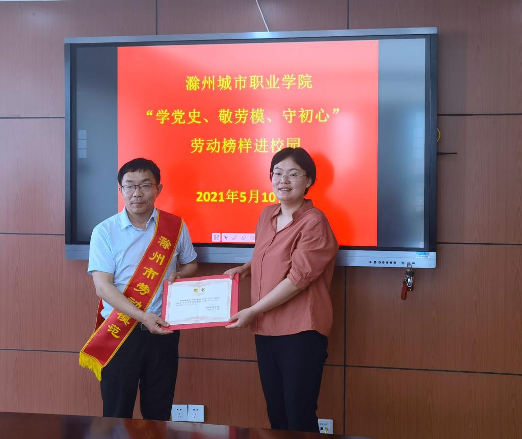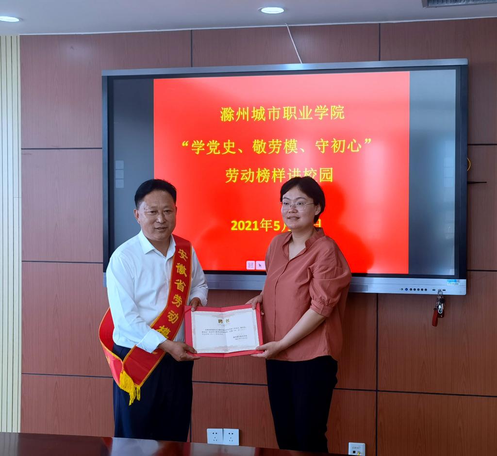 为进一步推进党史学习教育走深走实,培育和践行社会主义核心价值观,引领广大青年学子牢固树立依靠劳动创造美好未来、不忘初心托起中国梦的坚定信念,5月10日,我院在图文中心四楼报告厅隆重举办“学党史、敬劳模、守初心”劳动榜样进校园事迹宣讲会,并为劳动模范们颁发“学党史、强信念、跟党走”学习教育讲师团讲师聘书,党委书记米德成出席聘任仪式,并发表重要讲话。