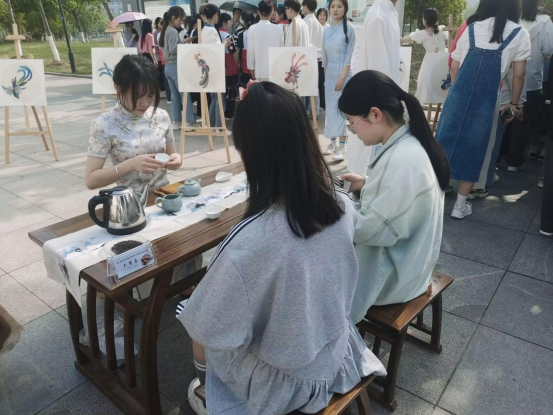 演出环节,清韵茶艺社带来的茶艺表演《春景》优雅舒缓、赏心悦目,校园歌手宋露、孟欣等几位同学演唱了动听的国风歌曲,中华经典读书社表演的“汉风雅韵”汉服秀古典唯美,兰墨书画协会和丹青凤画协会承办的“翰墨飘香 丹青留韵”书画作品展成为了校园里一道靓丽的风景线。