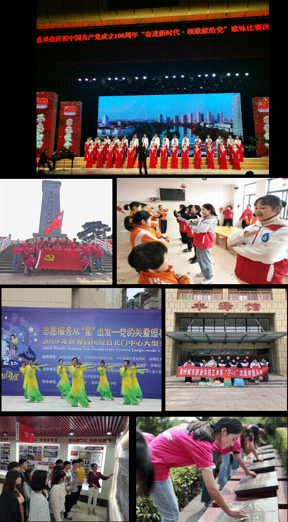 (七)开展多彩活动,提高艺术实践能力。持续开展庆祝“七.一”“国庆”和迎新年等活动,成功举办了三届“颂歌献给亲爱的党”和四届“我爱你中国”声乐比赛。定期举办师生音乐会、庆祝教师节师生书画展活动。积极参加滁州市举办的大型文艺演出、歌咏比赛,两次获得了第2名好成绩。