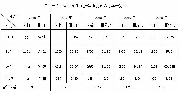 为了规范学生体质健康测试工作,购置测试设备,引进乐跑体质健康管理系统,提高体质健康测试管理水平,每年定期发布《滁州城市职业学院国家学生体质健康标准测试通知》,“十三五”期间,我院体质健康测试达标率稳步提升,在每年省教育厅抽测高职高专学校中成绩名列前茅,累计组织37000余名学生参加现场测试,成功上报国家教育部体测数据平台数据88万条测试数据。