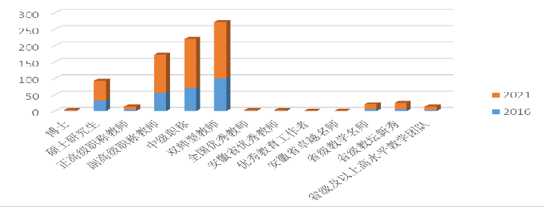 “百年大计,教育为本。教育大计,教师为本。”学校求贤若渴、笑迎贤能,近五年来,引进硕士以上研究生87名,培养“双师型”教师172人,着力培养高层次人才和教育教学团队,较“十三五”末增加省部级以上人才25人、增加省部级以上教育教学团队8个。经过五年的建设,现有教职工482人,校内专任403人,副高级职称以上132人,硕士以上260人。