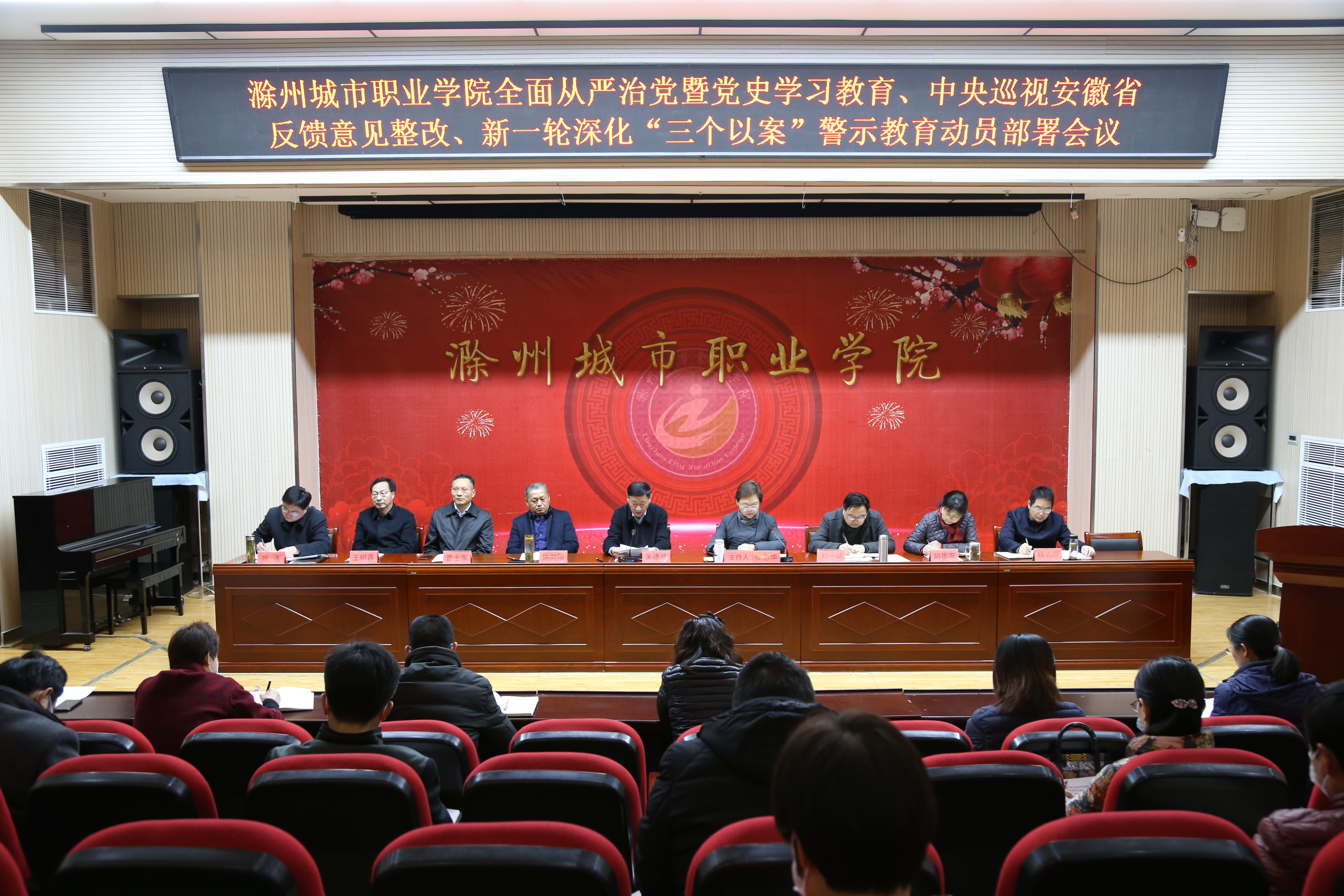 3月12日下午,学院全面从严治党暨党史学习教育、中央巡视安徽省反馈意见整改、新一轮深化“三个以案”警示教育动员部署会议在图文中心报告厅举行,会议分两个阶段进行,党委书记米德成出席会议并讲话,党委副书记、院长张志华主持会议,学院党委领导班子成员,院纪委委员,各基层党组织负责人、纪检委员,各部门、系部负责人参加会议。