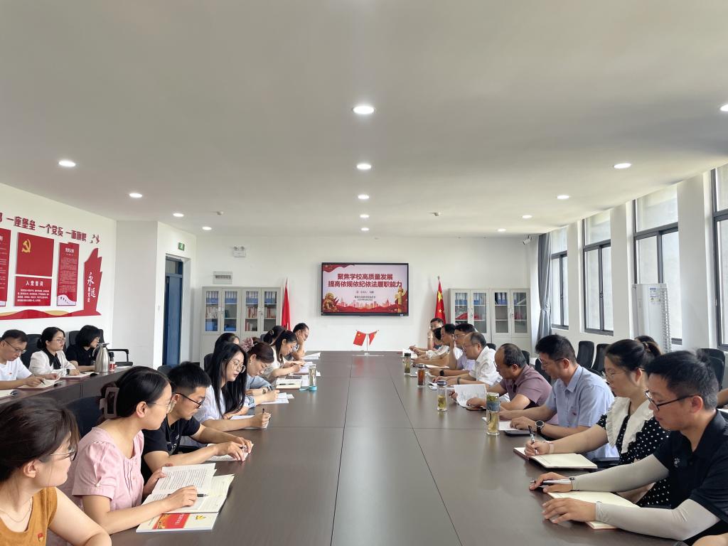 为进一步强化党员纪律意识和党性修养,切实推进党纪学习教育走深走实,6月20日上午,校党委委员、纪委书记池鹏以“聚焦学校高质量发展提高依规依纪依法履职能力”为题,为机关一支部全体党员讲授专题党课。