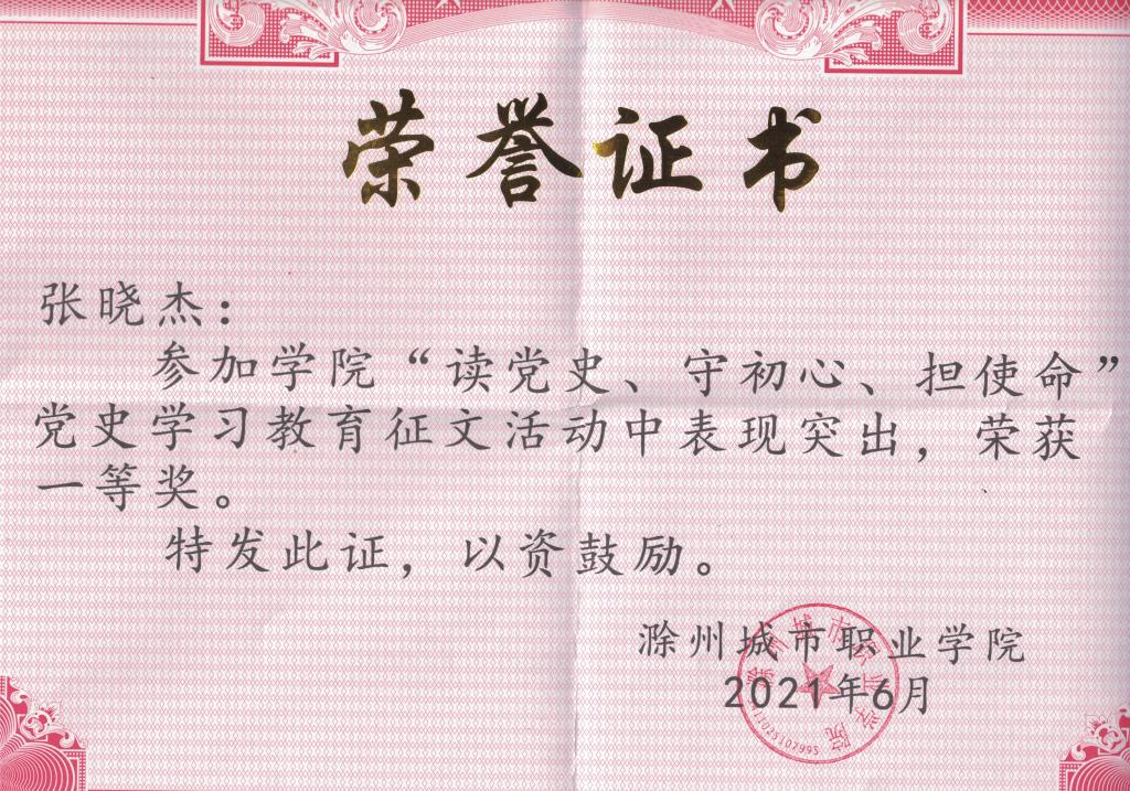 继续教育学院副院长张晓杰参加学院党史学习教育征文比赛,获得一等奖,2021年获城院最美教师称号,撰写的理论文章《聚焦职业教育发展,助力区域经济腾飞》被滁州市政府资料《滁州工作》2021年09期全文刊载。教学秘书孟红军2019年获得“优秀教育工作者”称号。