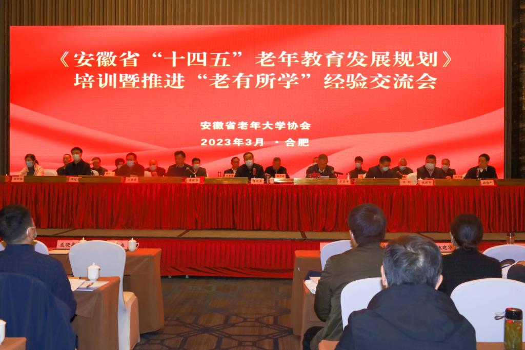 培训班暨经验交流会分别由副会长聂晓华、朱彤主持。安徽省老年大学协会会长陈先森、安徽省发展和改革委员会李全军、安徽省教育厅林兴德分别作了题为《做到“五坚持” 做好“五种人”》《坚持规划引领 推动老年教育高质量发展——<安徽省“十四五”老年教育发展规划>解读》《扩容增量 做实做强 奋力谱写新时代老年教育工作新篇章》的精彩报告。