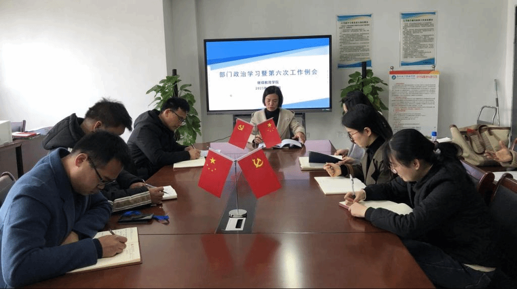 3月27日上午,继续教育学院召开本学期部门政治学习暨第六次工作例会,院长许梅、副院长孟红军及全体工作人员参加会议,会议由许梅主持。