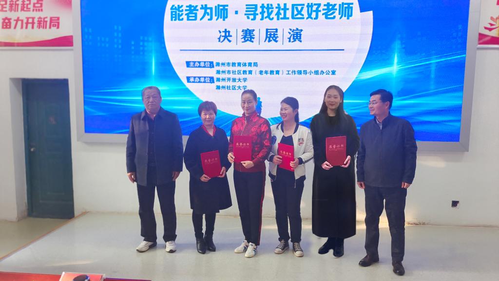 11月15日下午,滁州市首届“能者为师·寻找社区好老师”决赛在滁州开放大学开赛,我校老年大学任课教师王兴、毛丽芳、张蕾、王奕、温小娇5人参加比赛,分别取得94.2分、93.3分、92.1分、91.9分、89.8分的好成绩,最终斩获2个一等奖、2个二等奖、1个三等奖。