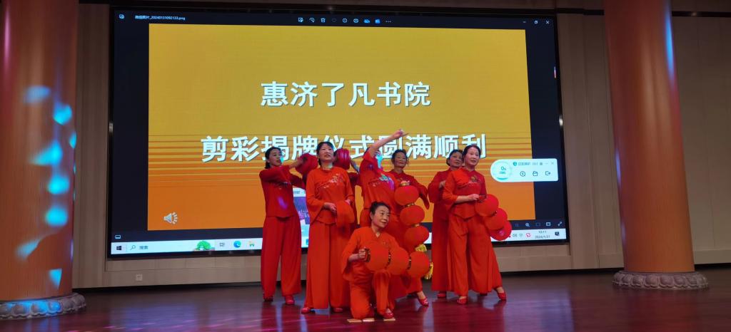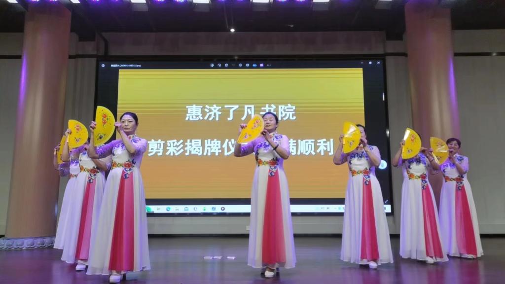 1月31日,我校老年大学受邀参加南京惠济了凡书院剪彩揭牌仪式,继续教育学院院长、校老年大学常务副校长许梅带领校老年大学舞蹈班、模特班24名学员参加仪式。