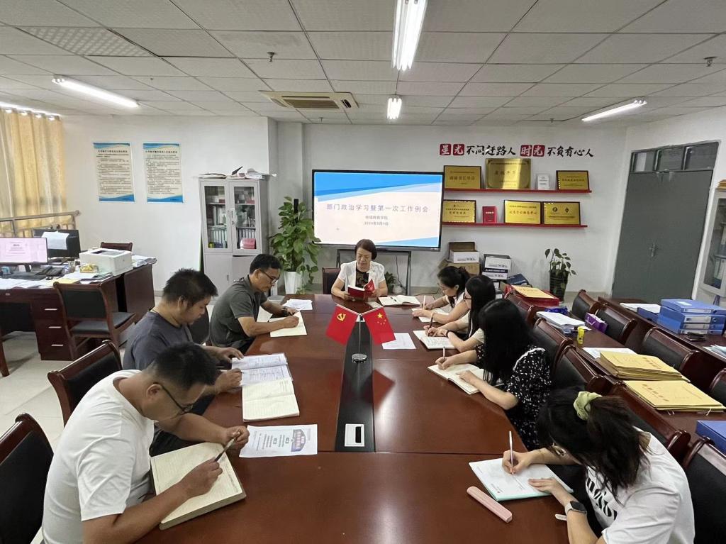 9月4日上午,继续教育学院召开本学期第一次政治学习暨部门例会,院长许梅、副院长孟红军、学历科科长汤雷、国际交流中心办公室主任张静及全体工作人员参加会议,会议由许梅主持。