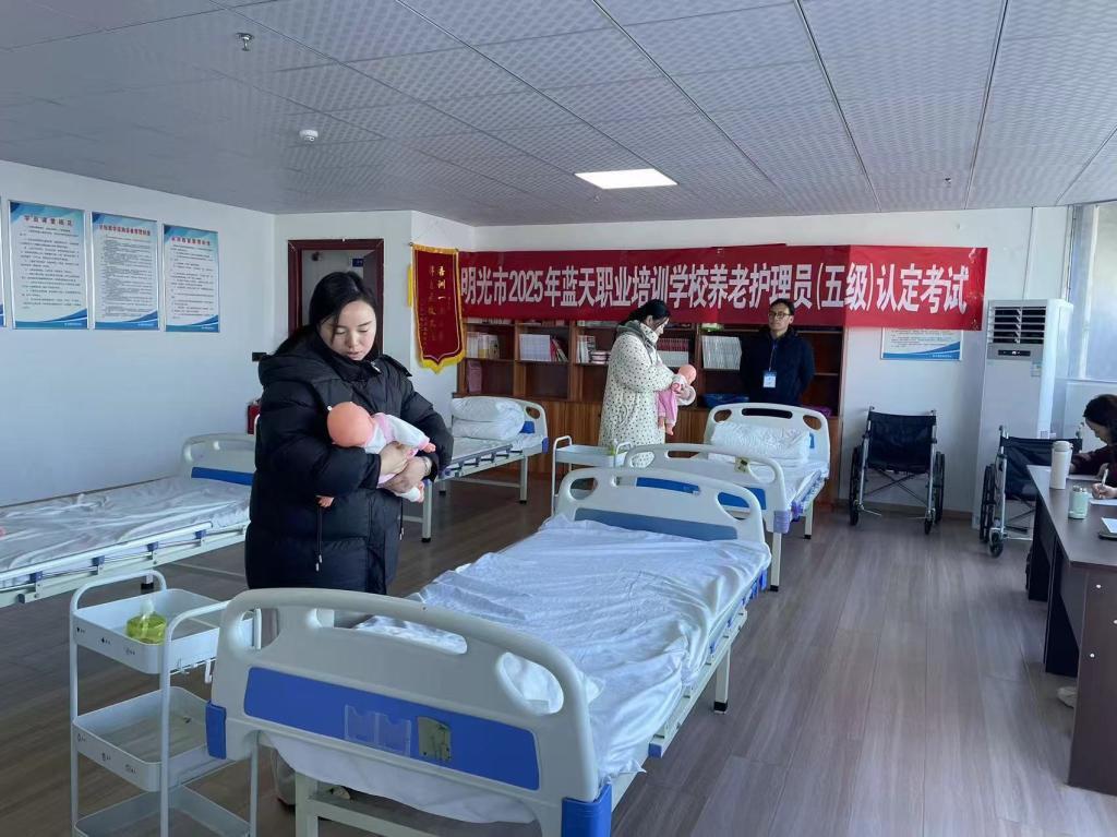 为进一步促进保育员、养老护理员技能人才培养,扩充滁州市技能人才队伍,1 月 16 日,我校与蓝天职业培训学校联合开展保育师(初级)、养老护理员(初级)职业技能等级认定。本次考试共62名考生参加,教育学院、护理学院此次共派出六名考评员参加认定工作。继续教育学院副院长孟红军到现场巡考。