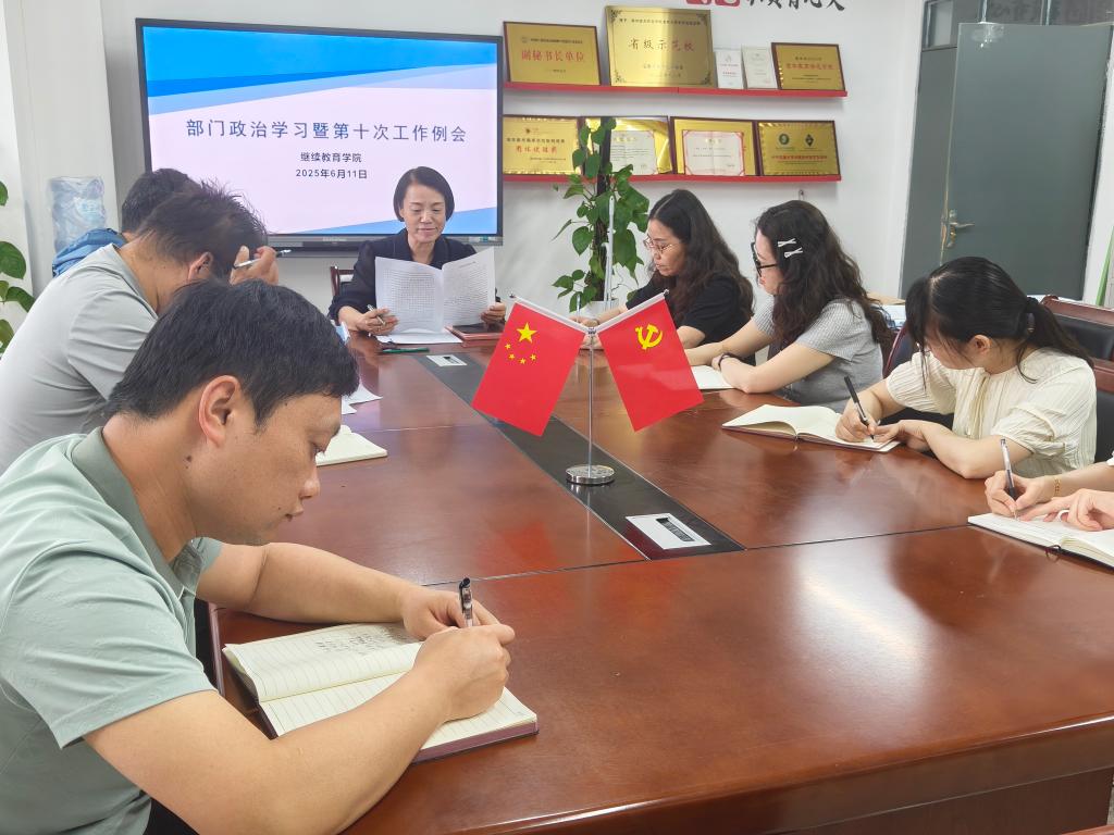 为进一步提升工作质量,推动继续教育学院各项工作有序开展。6月11日上午,继续教育学院召开本学期第十次政治学习暨部门工作例会,院长许梅及全体工作人员参加会议,校妇联副主席李磊列席会议,会议由许梅主持。