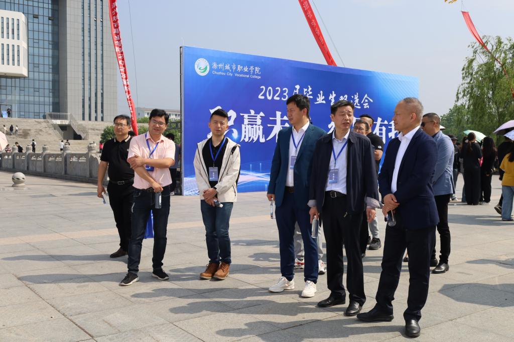 校党委书记张志华到双选会现场指导工作,与用人单位、毕业生深入交流,详细了解用人需求和毕业生就业意向,听取用人单位对我校人才培养、专业建设、就业服务、访企拓岗等方面的意见与建议,并鼓励毕业生积极就业。党委副书记、校长汪上陪同参加2022年度“强国杯”技术技能大赛5G+MR资源开发赛项全国总决赛的各级专家领导莅临双选会。校领导施向阳、吴惠珍陪同安徽省大中专毕业生就业指导中心彭飞、胡博文指导双选会。