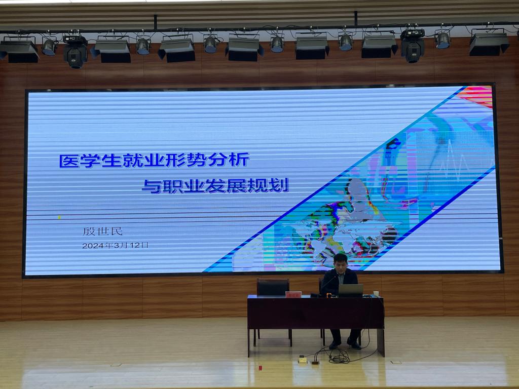 3月12日下午,合肥金楠肾病专科医院办公室主任殷世民做了题为《医学生就业形势分析与职业发展规划》的讲座,他从医学生就业形势分析、提升就业成功率、职业发展规划、个人成长历程四个方面开展指导。