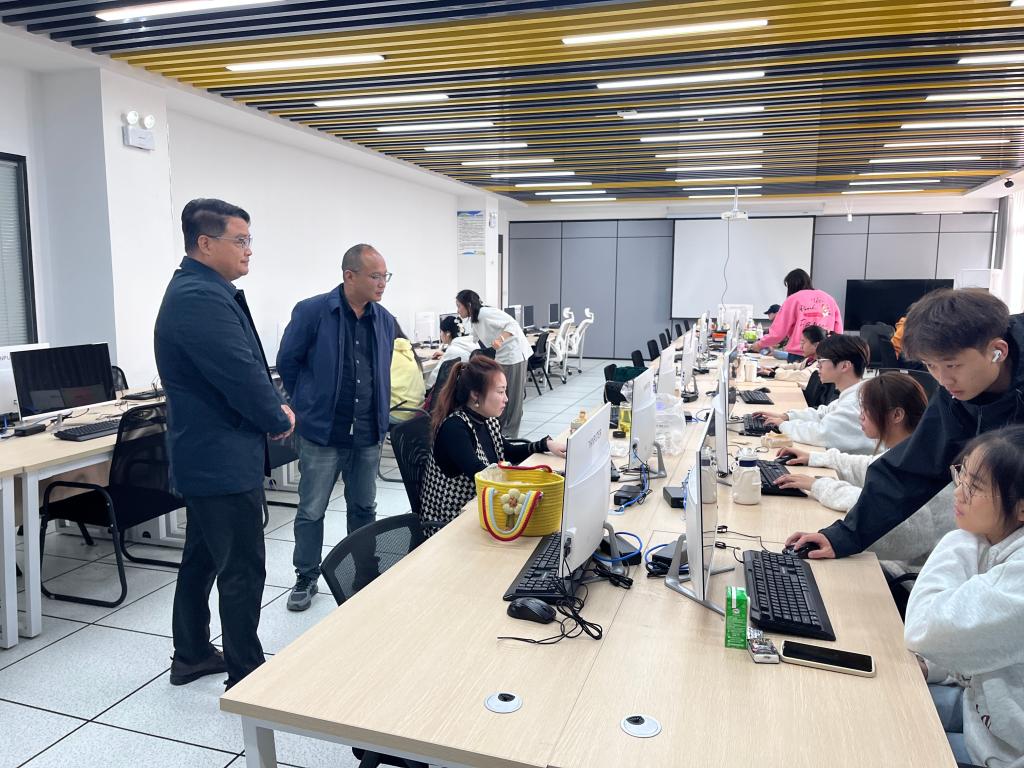 10月28日上午,管理与信息学院党总支书记陈兴旺、院长叶士舟、院长韩峰等一行前往走访了项目实训现场,看望慰问实习实践的学生。在实训现场,陈兴旺书记和叶士舟院长详细了解了学生们的实习情况,并与学生们进行了亲切交流。他们对学生们在实习中的表现给予了充分肯定,并鼓励学生们要珍惜这次实习机会,努力提高自己的专业技能和实践能力。