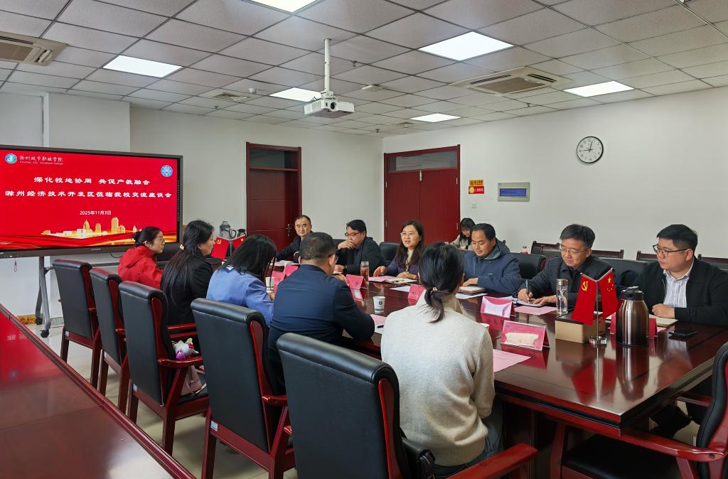 孙静首先代表学校对滁州经开区一行的到来表示热烈欢迎,并从专业建设、招生规模、实习就业情况、师资队伍结构及办学成果等方面详细介绍了我校近年来办学发展情况。她表示,学校始终坚持服务地方发展的办学定位,希望以此次交流为契机,进一步拓展与园区内各企业的深度合作,共同推动人才培养与产业发展的深度融合。