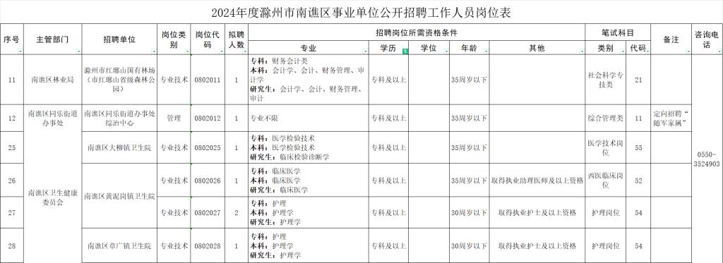 附件:2024年度滁州市南谯区事业单位公开招聘工作人员岗位表