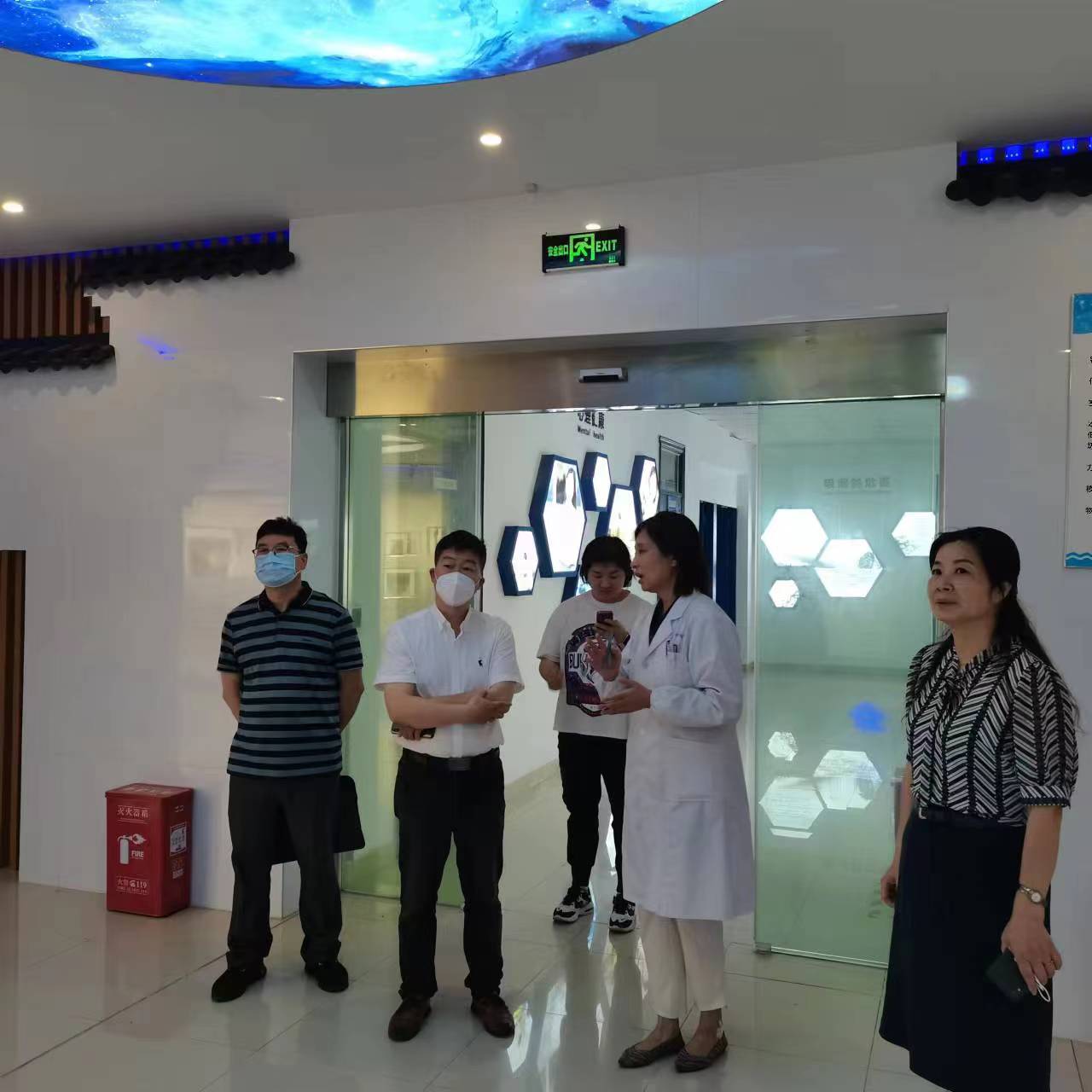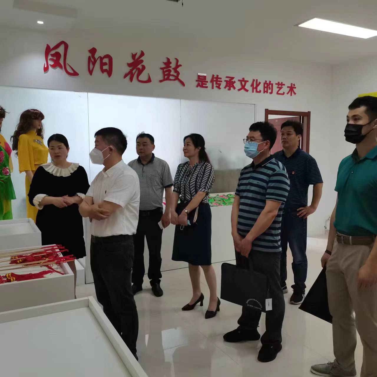 吴校长陪同怀主席一行先后参观了我校凤画大师工作室、凤阳花鼓工作室、护理技能大师工作室、生命科技馆、茶艺工作室等场所。