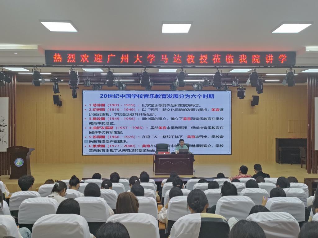 为强化学院学术研究氛围,提升我校师生论文写作质量,提高学生论文指导教师水平,10月18日,广州大学音乐舞蹈学院名誉院长、原院长、博士生导师马达教授应邀来校讲学。教育学院、艺术与传媒学院音乐专业相关师生共同聆听讲座,科技处处长杜裕民主持了会议。