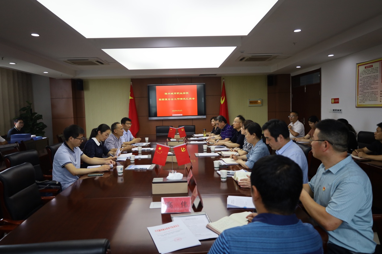 根据《安徽省教育厅关于组织开展2022年实验室安全现场检查工作的通知》的文件精神, 6月22日下午,省教育厅实验室安全检查专家组一行4人莅临学校,对我校实验室安全工作进行现场检查。校党委书记张志华亲自到场,党委委员、副校长曹士东主持了本次检查工作汇报会,党委委员、副校长吴惠珍,相关职能部门、各二级学院主要负责人参加会议。