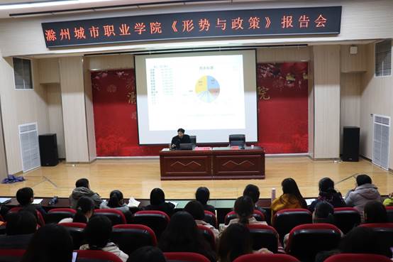 结合“不忘初心、牢记使命”主题教育,思政部认真学习贯彻党的十九届四中全会精神,积极推进思政课改革创新。11月27日下午,滁州学院马克思主义学院院长、党总支书记汪才明教授应邀为我院师生做题为“深刻领会习近平新时代中国特色社会主义思想”的形势与政策报告。思政部全体教师及各班班长、团支书共300余人聆听了专题报告,报告会由思政部主任季金年主持。