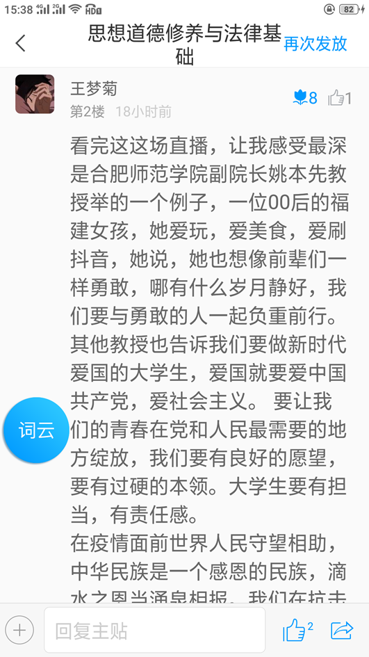 根据《中共安徽省委教育工委安徽省教育厅关于组织“全省大学生同上一堂战‘疫’思政大课”的通知》(皖教工委函〔2020〕68号)要求,为引导广大学生把疫情当教材、把困难当磨砺,4月23日下午,思政部教师组织学生齐聚云端,同上一堂战‘疫’思政大课。