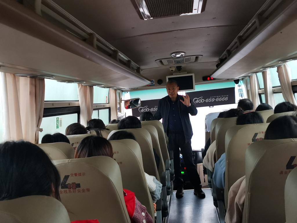 在前往小岗村的大巴车上,马克思主义学院的“移动课堂”首先由院长季金年开讲。他从“大包干从何而来”开讲。从大包干发生的背景、经过,讲到对中国农村改革产生的影响,用身边发生的变化给同学们谈改革开放的伟大成就。接着他饱含深情地讲述了“全国优秀共产党员”、全国“人民满意的公务员”沈浩的先进事迹。讲述了沈浩怎样用年轻的生命诠释了一个共产党员对党和人民的无限忠诚,讲述中也留下若干问题、若干悬念,等待同学们去现场寻找答案。