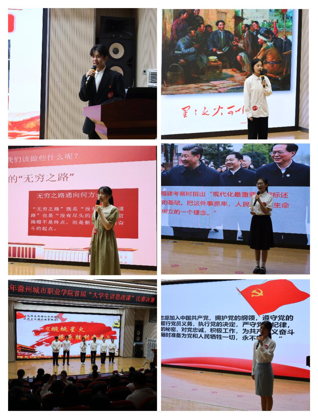 本次比赛共18支队伍参加,均由二级学院初赛产生。比赛现场,各参赛团队紧扣比赛主题,围绕思政课程中的相关章节,结合自身专业特色、学习感受和学校改革发展实际进行现场教学展示,内容丰富、构思新颖,主讲人讲解过程中,有的娓娓道来,有的激情澎湃,充分展示了良好的理论素养和教姿教态,为在场师生呈现了一堂堂精彩的思政课。