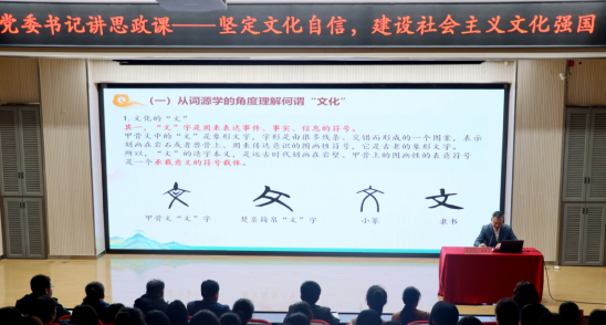 为深入学习贯彻习近平新时代中国特色社会主义思想,进一步加强大学生思想政治教育工作,3月26日下午,校党委书记王燕永以《坚定文化自信,加快建设社会主义文化强国》为题,为师生们讲授了一堂深刻且生动的思政课。各学院党总支书记、副书记、全体思政课教师以及青马工程班全体学员共同参与。
