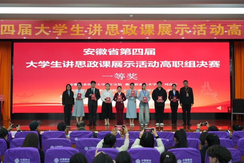 为深入学习贯彻全国、全省教育大会精神,坚持不懈用习近平新时代中国特色社会主义思想铸魂育人,持续推进“大思政课”建设走深走实,12月19日,由中共安徽省委教育工委主办、安徽职业技术大学承办的安徽省第四届大学生讲思政课高职组决赛圆满落下帷幕。在本次赛事中,我校3支参赛团队在赛事中表现优异,一举斩获一等奖1项、二等奖1项、三等奖1项的佳绩,充分彰显了我校思政课教学改革的显著成效与青年学子的深厚理论素养。
