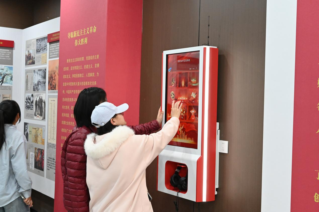 随后,青马情景体验工坊带来特色沉浸式体验环节。借助基地先进的3D曲面屏,现场播放《在“她”乡》纪录片,镜头聚焦新时代不同领域的杰出女性,展现她们立足岗位、勇毅前行的奋斗风采,让同学们感受到新时代女性的责任与担当。同时,大家还体验了MR头盔、VR瞭望台设备,通过虚拟现实技术身临其境地重温抗战岁月,回望抗战时期女性不畏艰险、投身革命的英勇事迹,直观感受革命女性的坚韧力量。此外,智慧沙盘互动体验让党史学习更具趣味性与互动性,同学们在操作互动中进一步深化对党史的理解,让红色记忆入脑入心。