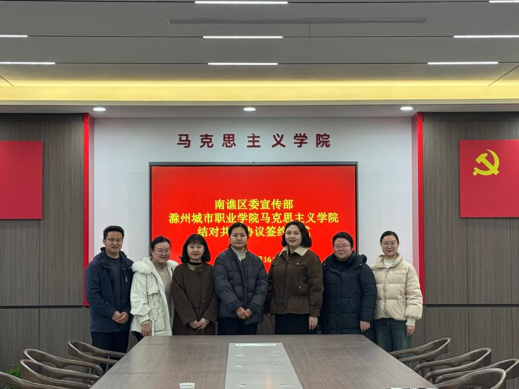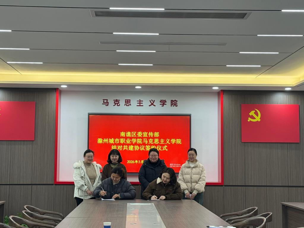 为深入学习贯彻习近平新时代中国特色社会主义思想,深化校地合作、推动理论宣讲与思政教育深度融合,3月16日下午,马克思主义学院党总支与滁州市南谯区委宣传部举行结对共建签约仪式。双方围绕理论宣讲、党建共创、实践育人、文化建设等领域达成全面合作,共同打造校地协同创新、资源共享、优势互补的党建与宣传思想工作新格局。