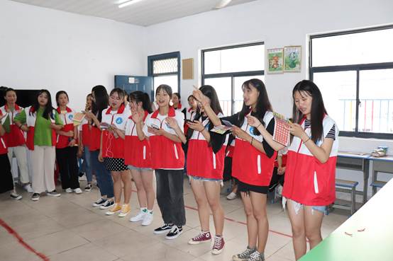 按照活动安排,参加活动的同学分为手工游戏、安全知识宣讲、急救知识宣讲三个小组。在简单的活动场地布置后,服务活动正式展开,各小组按照各自分工,积极开展服务内容。