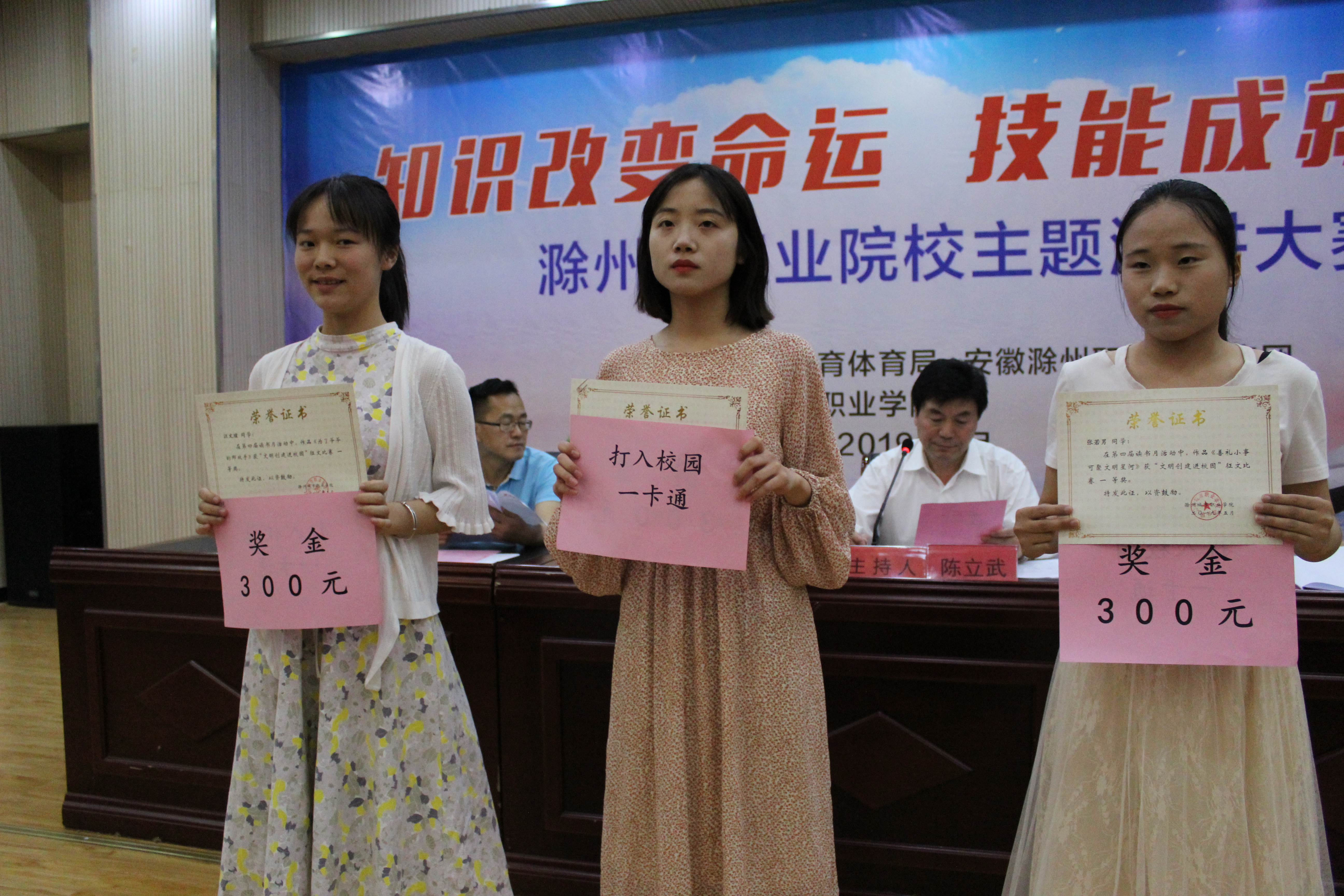 陈立武副院长宣读了获奖同学名单。并与有关部门、系部负责人一起向获奖同学颁发了获奖证书及奖品。