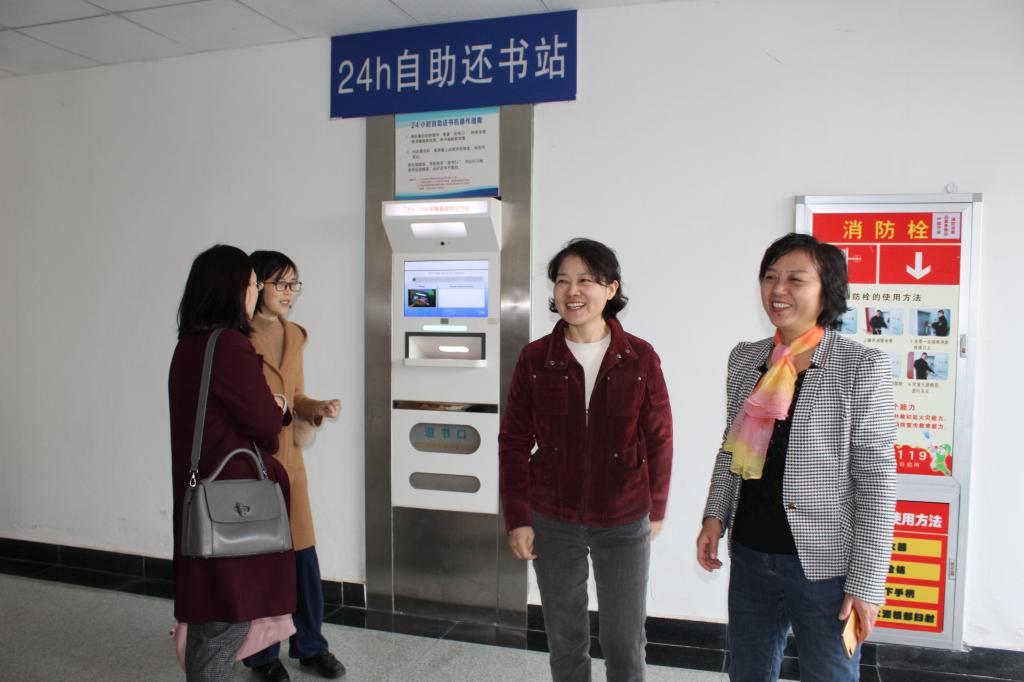 吴小冰馆长一行首先参观了我院校园,坐落在风景秀丽的琅琊山脚下的校园美景,深受客人的交口称赞。吴馆长一行饶有兴趣的参观了图书馆各书库、阅览室,马琴馆长、吴忠山副馆长全程陪同,边看边聊,介绍图书馆书库、电子阅览室、自修室的有关情况,来访人员还神情专注地参观了图书馆的馆内文化墙等。