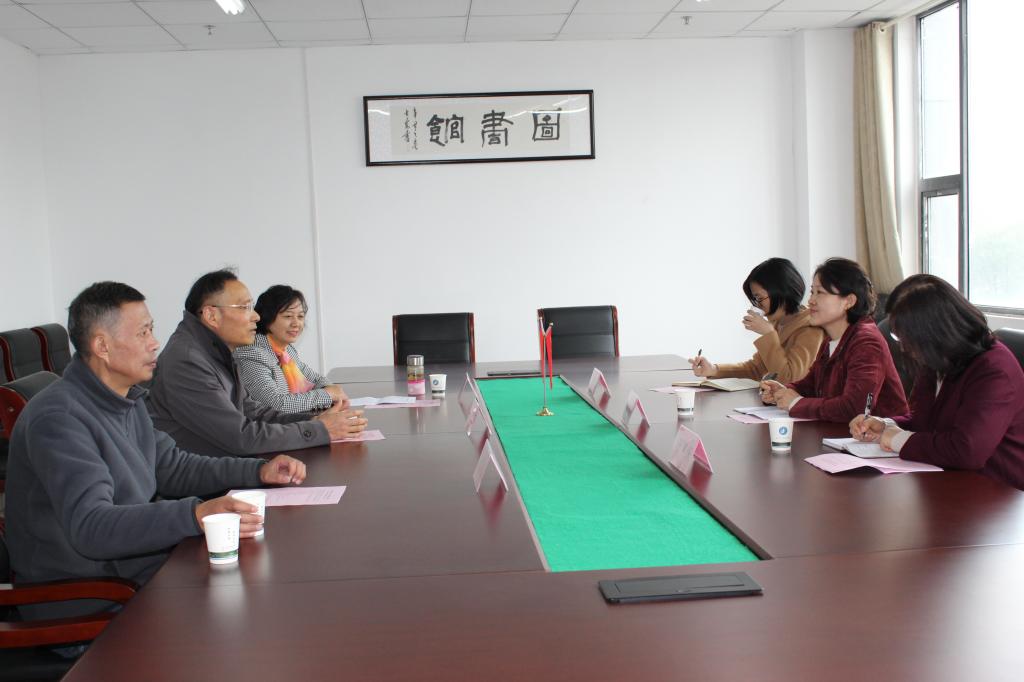 随后,我馆邀请吴小冰馆长一行在二楼会议室入座座谈。院党委委员、副院长曹士东亲临会议室并致欢迎辞,向客人介绍了我院技能型高水平大学建设情况,马琴馆长详细介绍了我院图书馆馆藏资源建设、图书借阅及电子资源使用情况、阅读推广活动开展情况等。