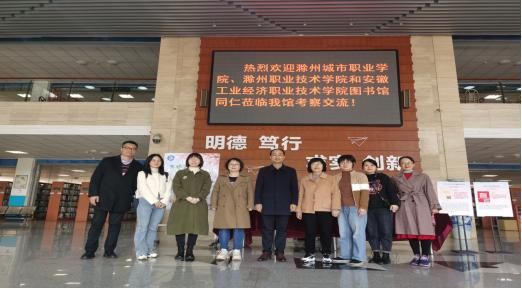 3月24号上午,我校图书馆与滁州职业技术学院、安徽工业经济职业技术学院图书馆一行人赴成都航空职业技术学院图书馆参观交流。我们受到了成都航空职业技术学院图书馆馆长刘艳磊的热情接待,刘馆长介绍了他们在智慧图书馆建设、文献资源建设等方面的经验和心得,让我们对智慧化图书馆建设有了更直观的感受。