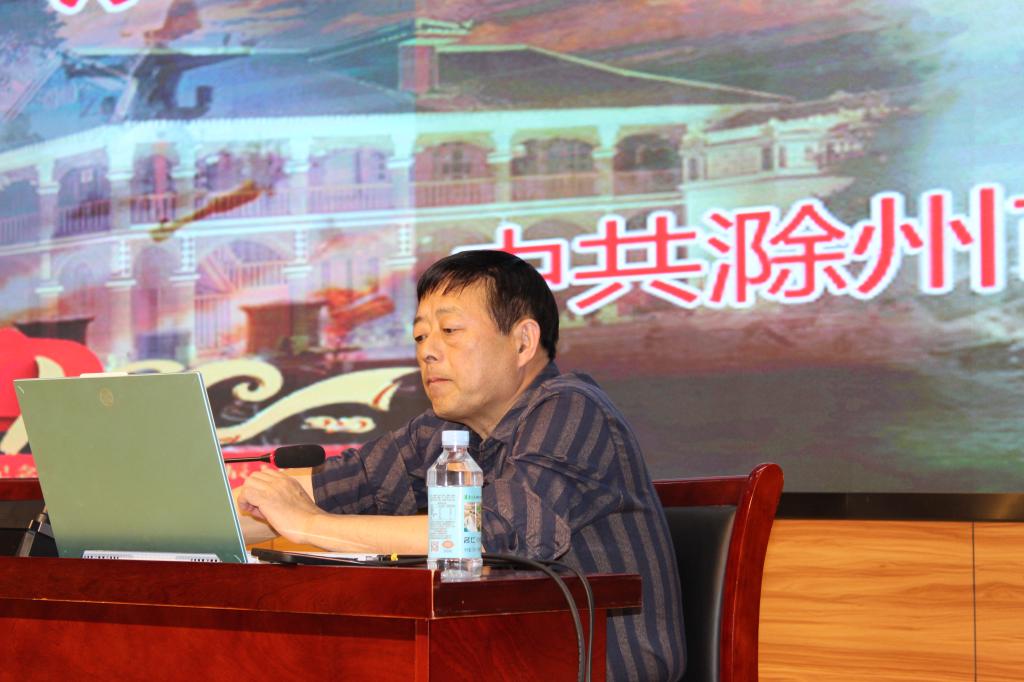 为激发当代大学生不断厚植爱国主义情怀、培养担当精神、强化责任意识、传承红色基因、弘扬优秀文化传统筹,5月27日下午图书馆邀请了滁州市委党校俞风流教授在学校第二报告厅报告厅举办了题为“百年征程 大浪淘沙”的党史教育名家讲坛。活动由图书馆馆长蔡季秋主持,学校100多名师生代表聆听了讲座。