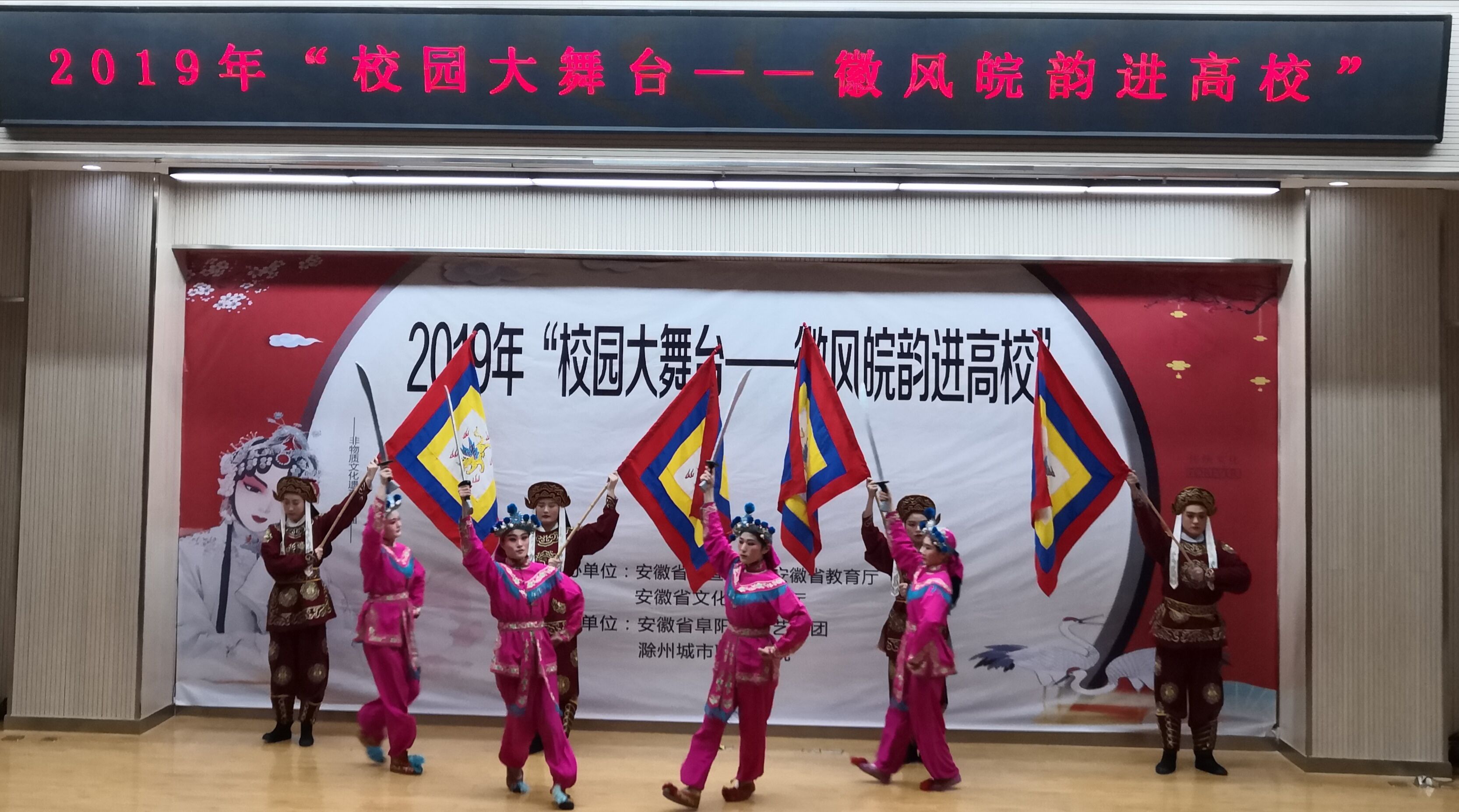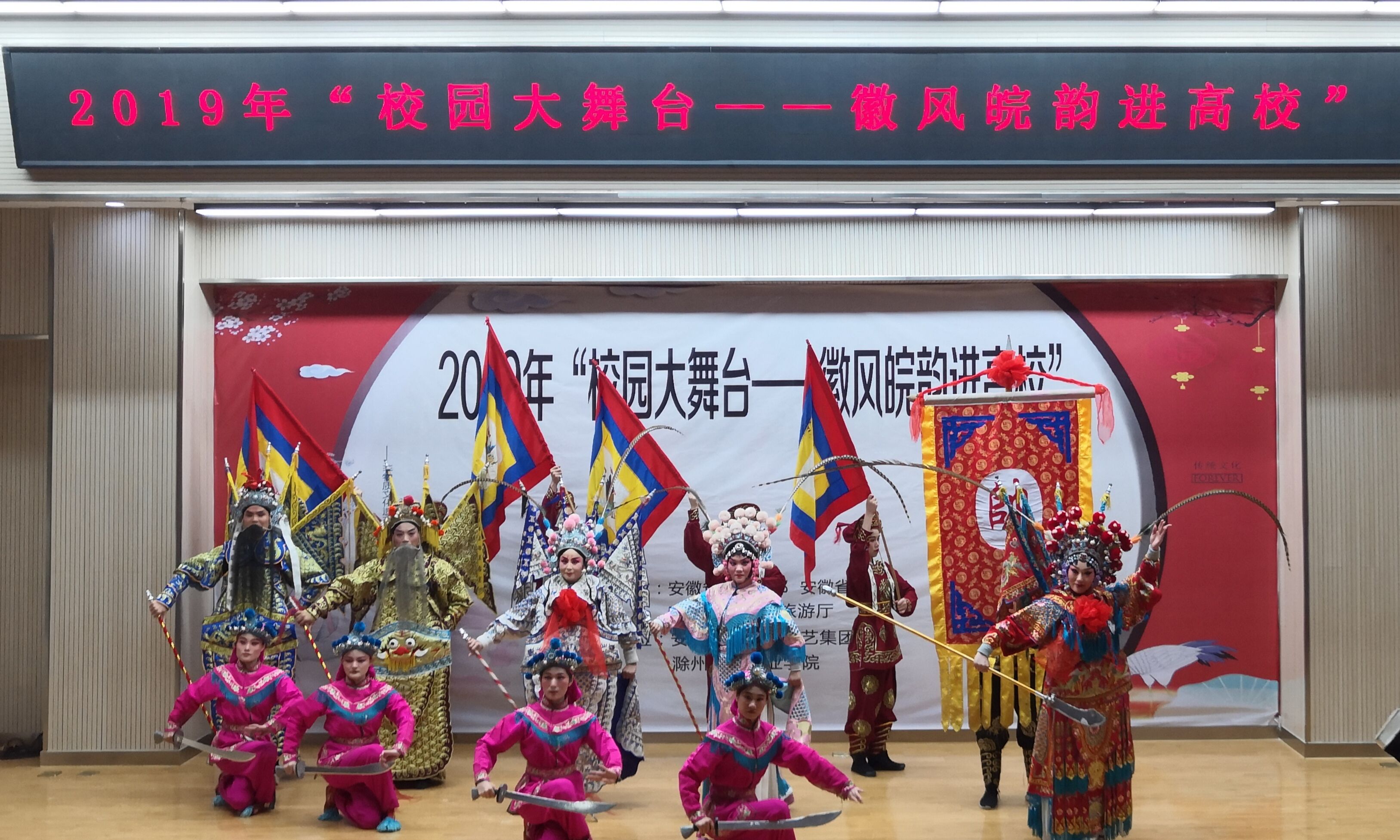 为弘扬中华传统文化,传承普及戏曲艺术,丰富校园文化生活,10月15日下午,由中共安徽省委宣传部、省教育厅、省文化和旅游厅主办,滁州城市职业学院和阜阳市演艺集团承办的2019年“徽风皖韵进高校”戏曲专场活动在我院图文中心四楼报告厅隆重举行。学院党委书记米德成、学院党委委员、副院长施向阳、各部门负责人以及300余名师生全程观看了此次演出。