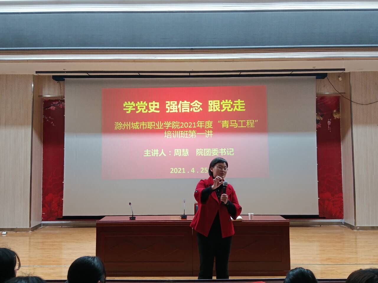 为进一步引领青年学生骨干深入学习贯彻习近平新时代中国特色社会主义思想和党的十九大精神,加强当代青年大学生“学党史、强信念、跟党走”学习教育,培养一批德智体美劳全面发展的社会主义建设者和接班人。4月25日下午,我院在四楼报告厅举办“学党史、强信念、跟党走”学习教育暨2021年“青马工程”培训班开班仪式。出席开班仪式的有:院党委委员、副院长施向阳,团委书记周慧,各系团总支书记,2021年“青马工程”全体学员及全院团支部书记,仪式由团委副书记陈婷婷主持。