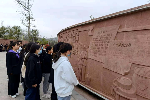 祭奠结束后,同学们共同参观了红色文化区的人物浮雕墙。同学们看着这些浮雕,仿佛一幕幕波澜壮阔的革命斗争史展现眼前,同学们深刻感受到了革命先辈不屈的民族精神和高尚的爱国情操,接受了一次深刻的主题教育和思想灵魂的洗礼。