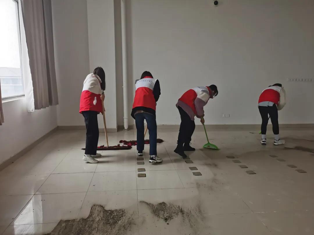 活动现场,学生志愿者统一着志愿者马甲、佩戴红袖章,手持扫帚、夹子等卫生工具,充分发挥不怕累、不怕脏的精神,对本校图文中心图书馆进行集中清理各处的“牛皮癣”,对地面、门框、玻璃及卫生死角进行了清扫,并细致进行垃圾分类,确保不留卫生死角。